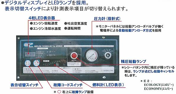 視認性が向上したモニタパネルには、4桁LED表示器を採用。運転状態を表示します。